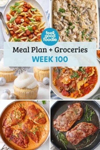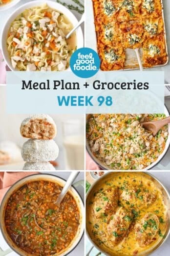 Most of the meal plans include recipes for a family of four. The recipes tend to have similar ingredients to minimize the number of grocery trips you’ll need to make and reduce waste. You’ll notice that each grocery list is divided by sections in a grocery store to make shopping easier for you. You can print out this grocery list or copy/paste it into a grocery list app and check things off as you buy them at the store. The meal plan grocery lists are a life saver!