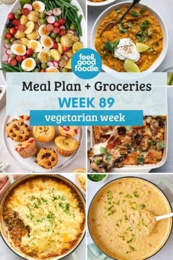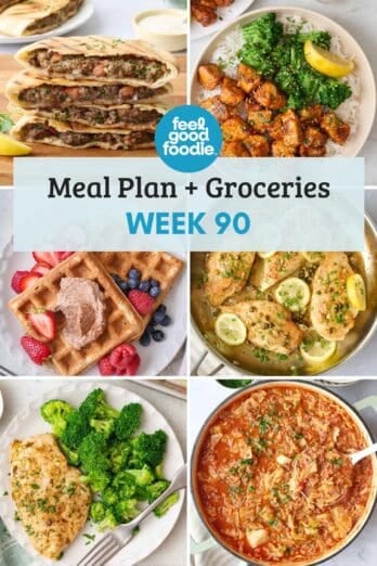 Most of the meal plans include recipes for a family of four. The recipes tend to have similar ingredients to minimize the number of grocery trips you’ll need to make and reduce waste. You’ll notice that each grocery list is divided by sections in a grocery store to make shopping easier for you. You can print out this grocery list or copy/paste it into a grocery list app and check things off as you buy them at the store. The meal plan grocery lists are a life saver!