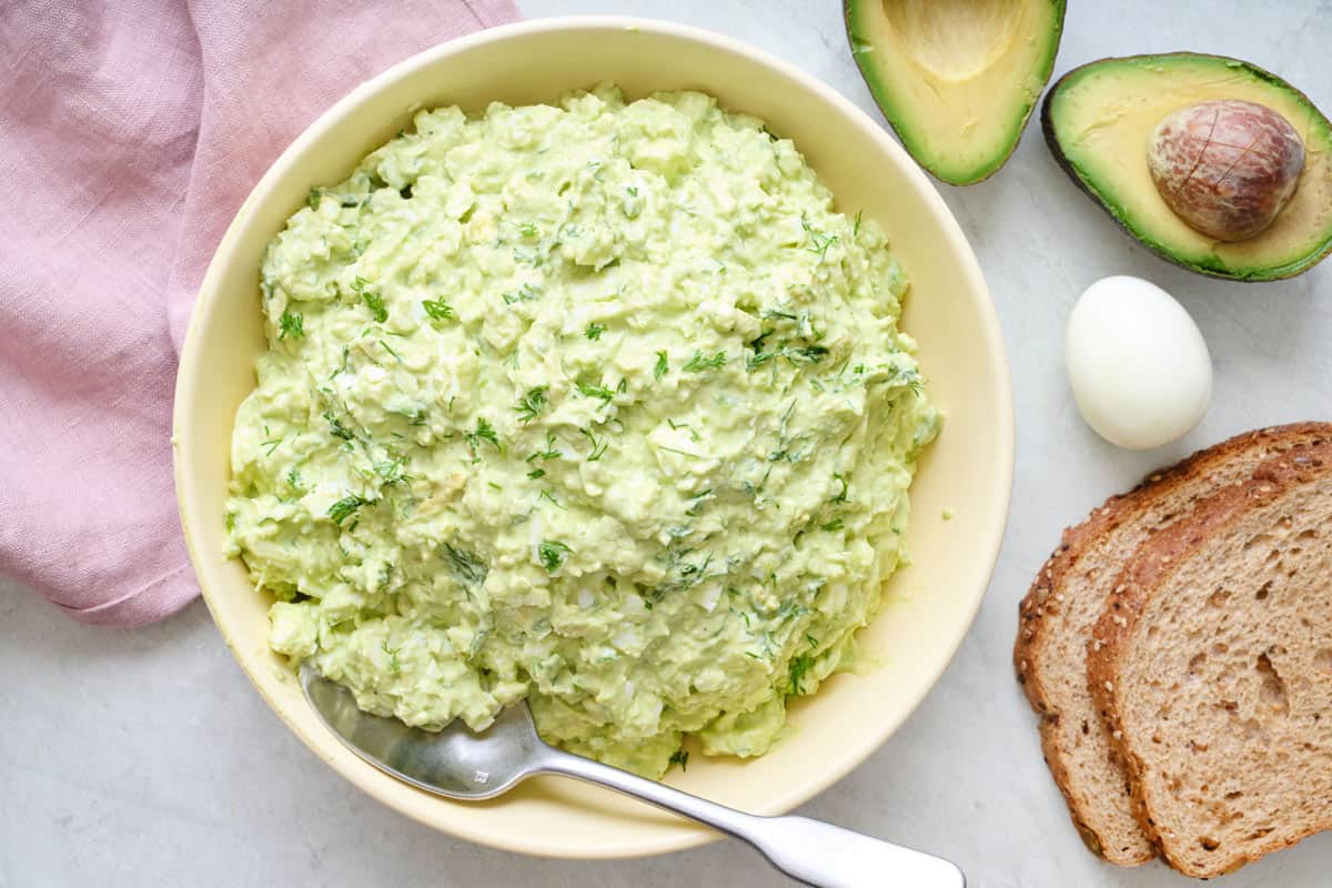 A lighter Avocado Egg Salad made with avocado and Greek yogurt instead of mayo, fresh dill, lemon, and Dijon. Creamy, ready in about 15 minutes