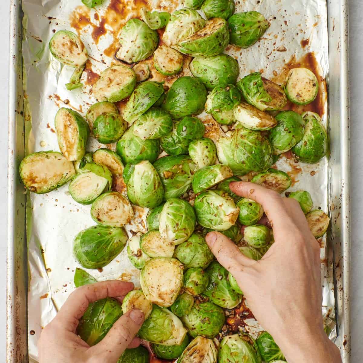 - Make sure your Brussel sprouts are evenly coated. I recommend using your hands; it’s the best way to do it!