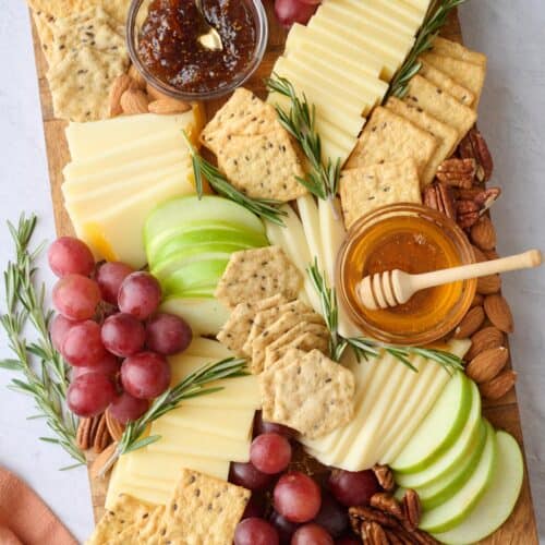 - Prep the cheese board in advance to save time. You can prep everything a few hours in advance and just cover it with a plastic wrap. If you’re using nuts or greens though, it’s best to add those immediately before serving to preserve freshness.