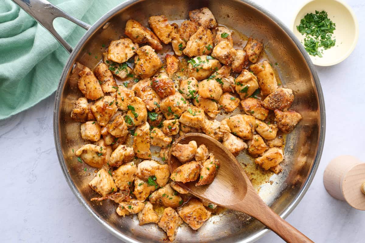 These easy chicken bites are juicy and full of flavor! Made in just 20 minutes with simple seasonings, theyโre a quick family favorite dinner.