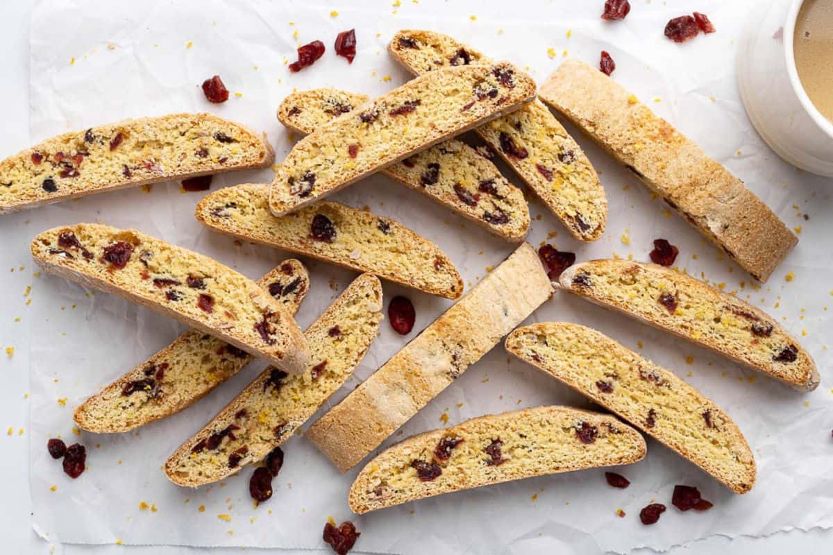 Homemade cranberry orange biscotti with fresh orange zest and chewy cranberries baked into a crispy cookie. Simple and freezer-friendly!