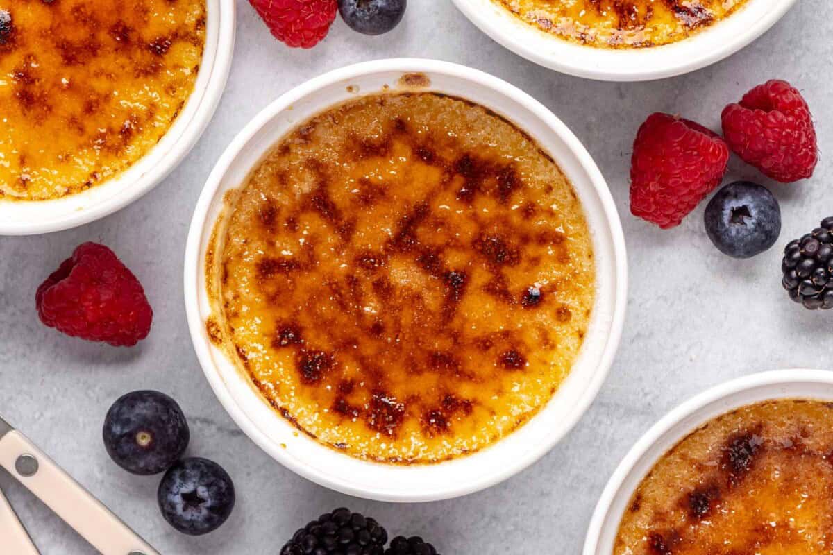 There are only 5 ingredients in creme brulee, and none of them can be switched out or substituted. Make sure to use exactly what’s listed for the best outcome.