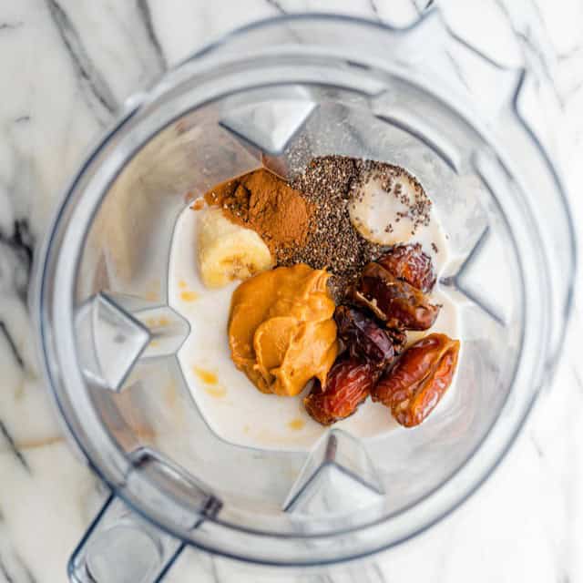 - Chia seeds: It naturally thickens the date shake since it absorbs some of the liquid and it adds fiber, but you can leave it out.