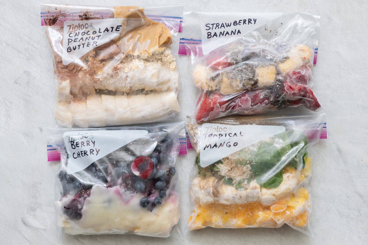 This smoothie pack recipe includes four simple smoothie combinations designed for meal prep and quick blending at home.