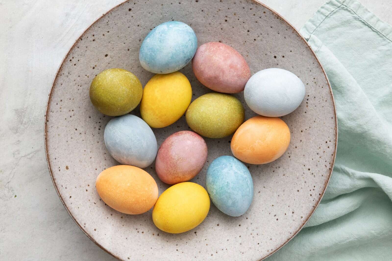 Learn how to make natural Easter egg dye using ingredients like beets, turmeric, onion skins, cabbage, blueberries, vinegar, and baking soda.