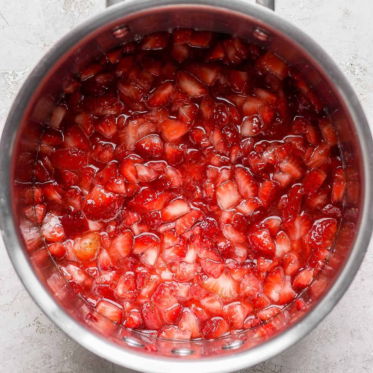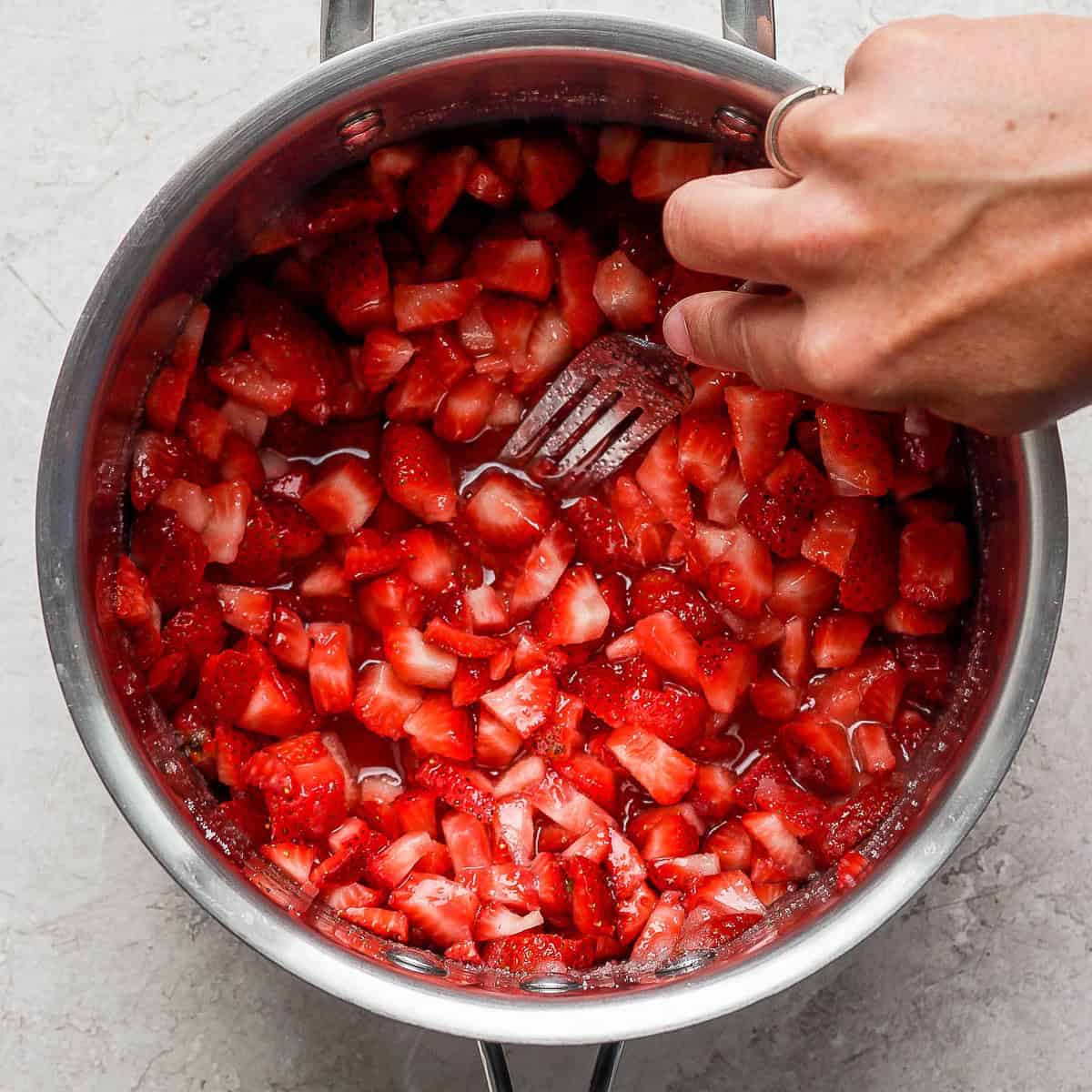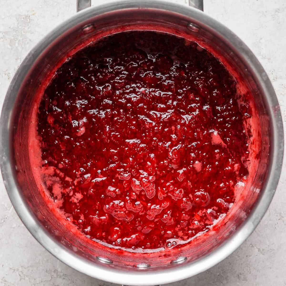 - Once the sugar has dissolved, turn the heat up to high and cook until thickened, stirring frequently, about 15-20 minutes.