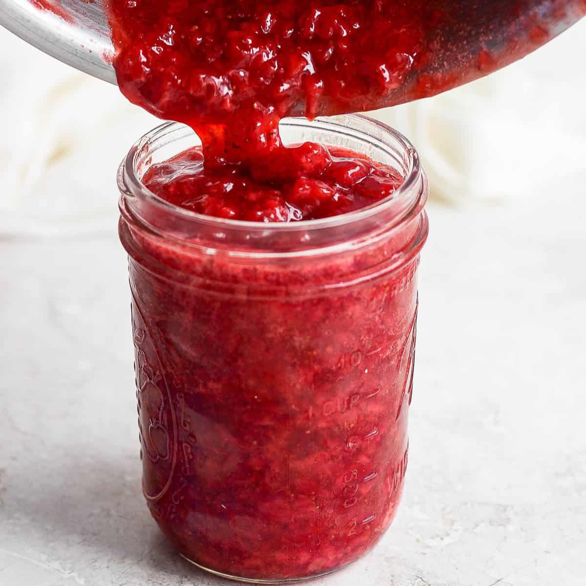 - Turn off the heat and transfer the jam into 2 clean 8-ounce mason jars. Cool the mixture, then store in the refrigerator for up to 3 weeks.