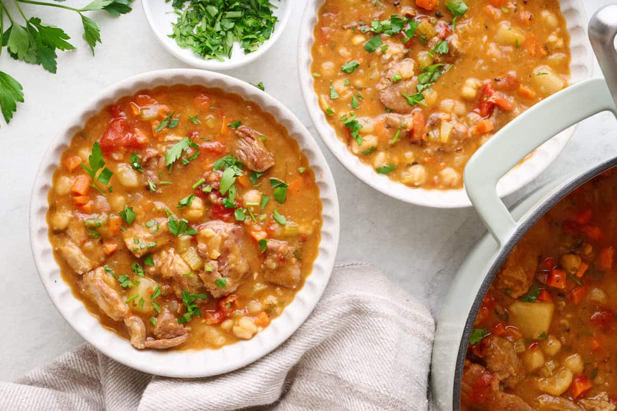 This lamb stew is so good, with Mediterranean flavors, hearty veggies, and chickpeas, it's slow cooked, making the lamb shoulder tender and juicy.