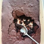 Bake for exactly 1 hour. A cake tester inserted about 2 inches from the edge should come out mostly clean. The center will look very underbaked—this is intentional and gives it a pudding-like texture. Let cool slightly, then serve warm with vanilla ice cream.